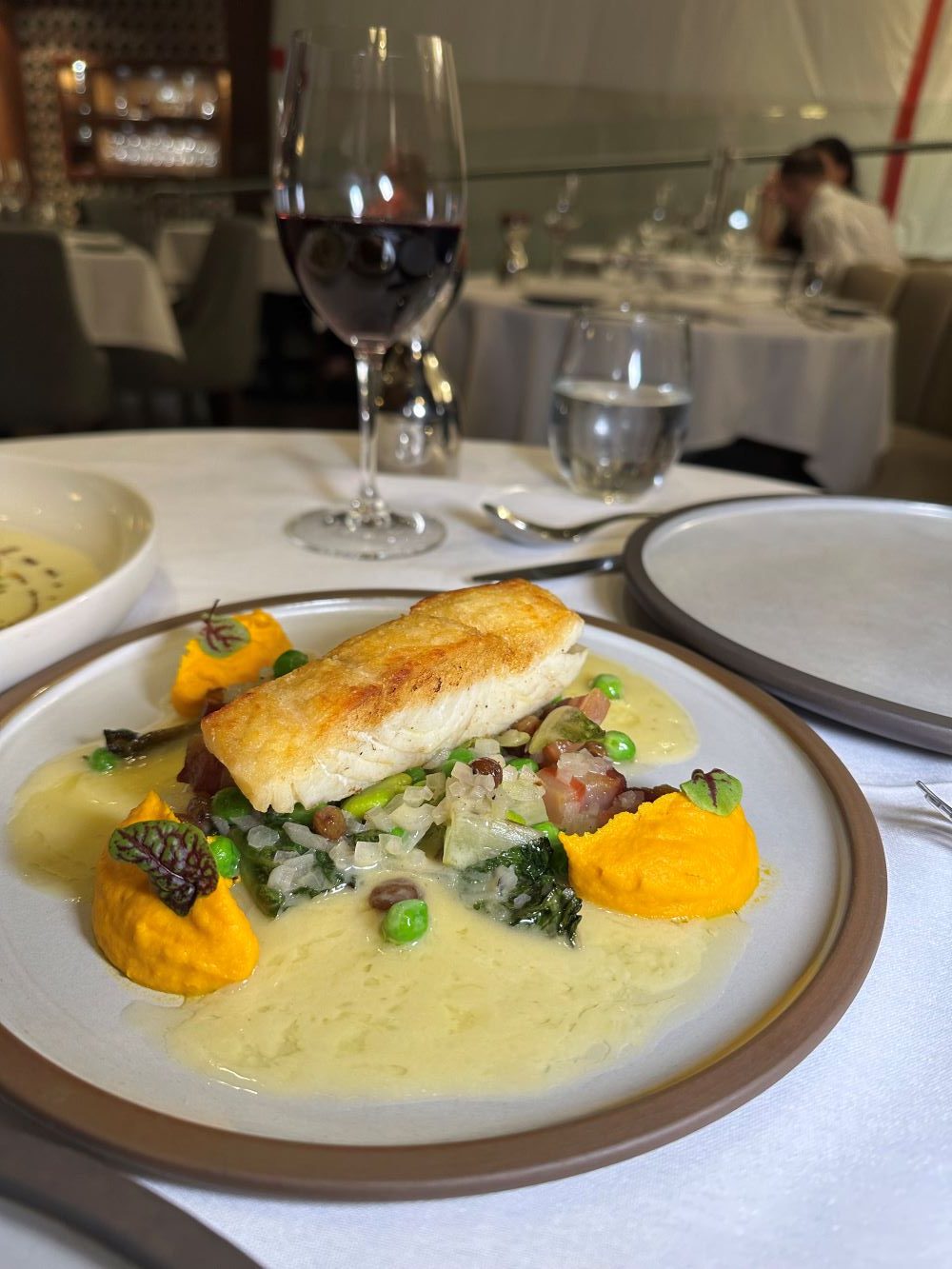 It is halibut season after all, so Zolnasr had to include his interpretation of the fish among the entrees. While steak is always tempting at C Prime, the halibut comes with a beautiful golden crust on a pea and fava ragu with grilled romaine, all in a beurre blanc sauce. Islands of smoked carrot purée dot the plate as well.