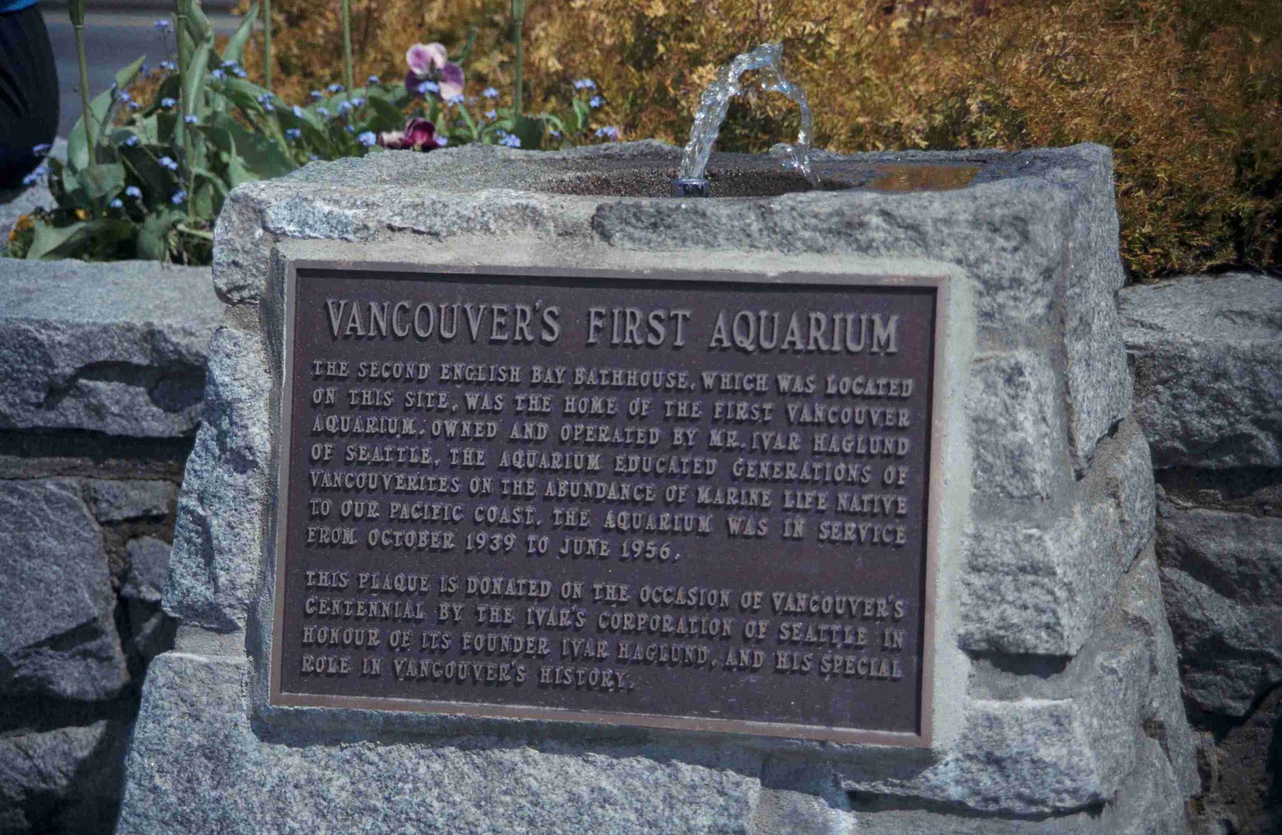 1986-1987 – photograph of a plaque donated by Ivar’s Corporation of Seattle recognizing Vancouver’s first aquarium and its owner and operator, Ivar Haglund.