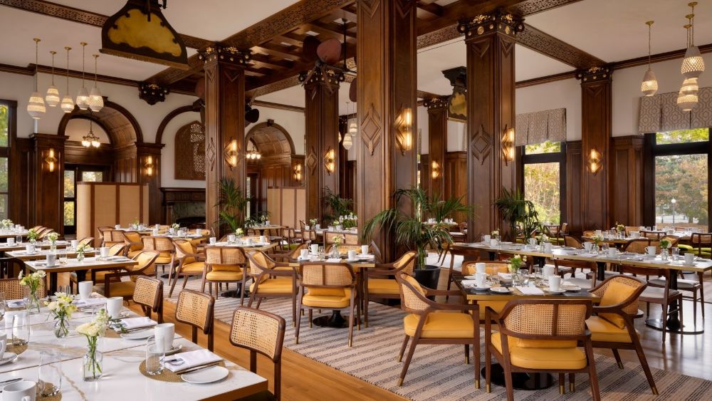 Originally, it opened in 1912 as the Reading & Writing Room before, in 1954, it evolved into the city’s first cocktail lounge of its kind: The Coronet Lounge. The old design was heavily inspired by British colonial-era India. While in some ways, the new Bengal does still speak to that history, it now feels lighter. Rather than functioning as a lounge or cocktail bar, now The Bengal serves as the hotel’s breakfast room. Thankfully, key design details like the heritage-style beams, pallisters, intricate carvings, and antique ceiling fans remain. However, the colour palette has been softened: organic greens and creams harmonize with the prevalence of dark wood and create a connection to the gardens just outside.