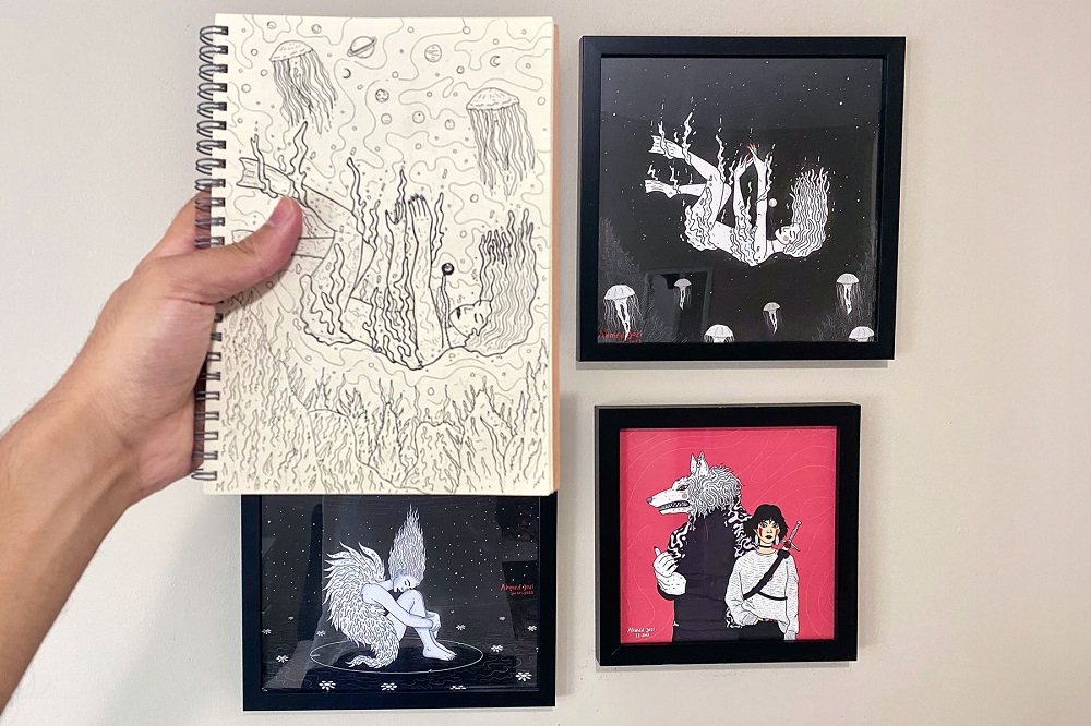 He is very patient when it comes to art; he doesn’t mind spending hours drawing small details because it helps in freeing his mind. He doesn’t always plan his drawings; his best work often comes from freestyling, letting the ideas evolve naturally.