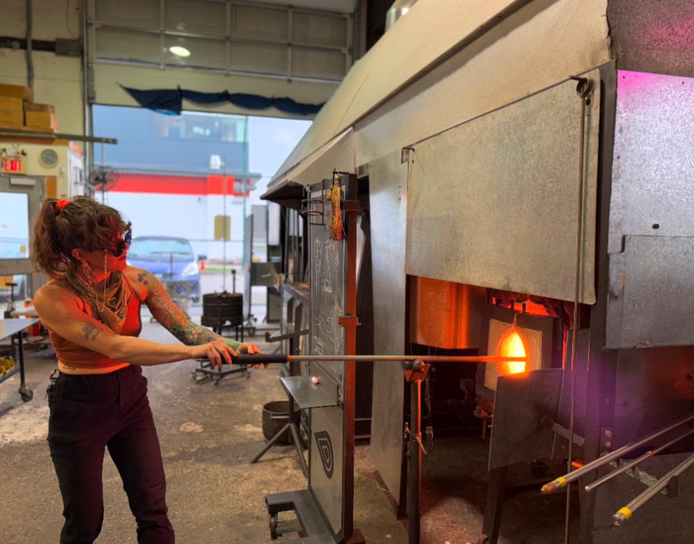 Claire completed Sheridan College’s Art Fundamentals Program, 2008 and Sheridan College; Craft and Design Program for Glass from 2012. In her professional career, Claire has owned her own glass-blowing studio, focusing on a line of functional glassware in Niagara Falls, Ontario. Claire was a co-owner in a flameworking studio that focused on Jewellery and intimates for the LGBTQ2I+ community in Hamilton, Ontario. Clarie also worked as a glassblower in the background of the Netflix show Blown Away, a reality show about glassblowing. Claire is currently Studio Manager at Terminal City Glass, Vancouver, BC, where she is also focusing on community building. Throughout her career, Claire has honed her craft as a glass artist with hours in the studio, while also challenging her intellectual and philosophical ideas by attending different artist residencies throughout North America, either as a student or teacher. When Claire is not bringing the art and design community together, she’s bringing her positivity and lightness to the rock-climbing community, either in the gym or out in the Mountain crags of Squamish, BC.