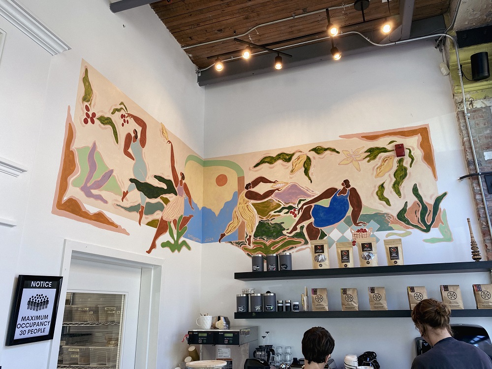 At heart, I explore human connection – with each other, with nature, and with ourselves. I work across murals, canvas paintings, textile patterns, editorial illustration, and animation, adapting my style to different mediums while maintaining my signature energy.