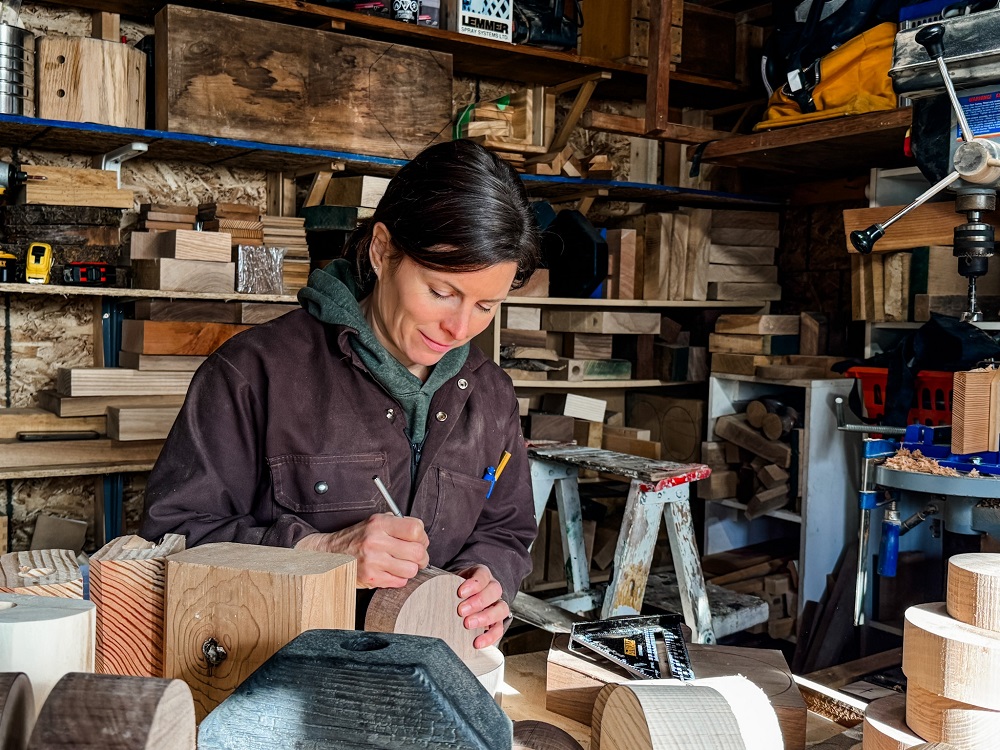 Jeanette Schisler, the owner and woodworker behind Coldwell Creations, crafts handcrafted woodworking pieces using reclaimed and repurposed materials. Her business ethos is rooted in keeping waste out of landfills and celebrating the unique characteristics of each piece of wood, where imperfections become cherished features. Jeanette aims to support the shift towards a circular economy, which emphasizes rethinking, reusing, refurbishing, and reinventing materials.