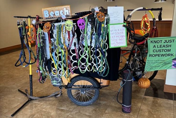 Knot Just A Leash Custom Ropework. We do custom dog leashes and collars. We also do knife handles, bike frames, and tactile support for low vision.