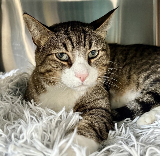 Meet Soren! This handsome gent came into our care when sharing his home with a toddler became too overwhelming. He is a lovely boy who craves attention and cuddling. Playing under the sheets, hiding in cardboard boxes, and bird watching from a chosen windowsill are some of his favourite activities. Soren will do best in a home without children so he can feel at ease and shower you with all his affection.
