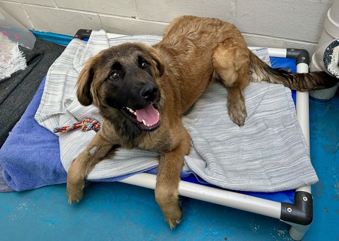 Meet the world’s most cuddly pup around, Daphne. She is a very goofy girl with a lot of love to give! Daphne and her sister Dahlia came into the BCSPCA’s care after they were found wandering around a rural property in Northern BC. This happy puppy loves to explore the world with her nose on walks, and while she is still working on keeping all 4 paws on the floor when she meets new friends, she loves to learn and is eager to please her people. She gets along great with other dogs, and would likely be fine in a house with dog-savvy children. She would love a safe outdoor space where she can grow and play, too! After she gets her wiggles out on a walk, Daphne will snuggle up to you for some belly rubs and a nice long nap!